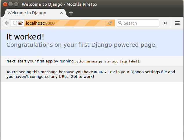- 열린 웹 페이지에서 Django 문자열이 있는지 확인한다.