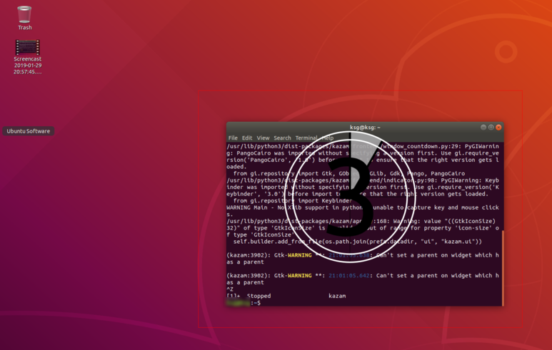 터미널창에 kazam 이라고 입력하면 실행이 된다.