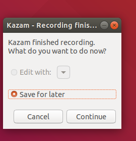 위와 같은 창이 생성되고 Continue를 눌러서 녹화를 마무리 하면 된다.