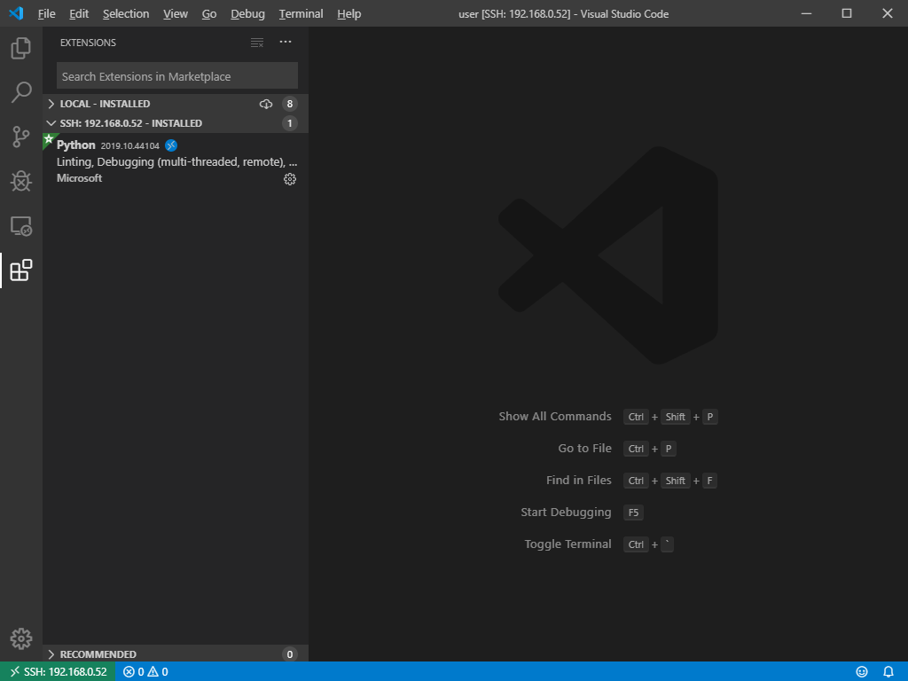 그림에서 보듯이 Local Machine에서 VS Code 를 이용하여 작업하지만 그 작업 대상은 Remote Machine으로 해당 Machine에 접속해 VS Code Server를 설치하고 해당 Machine에서 동작할 필요한 Extension 설치 후 마치 Local Machine에서 하듯이 코드 개발, 실행, 테스트 등을 수행할 수 있다.