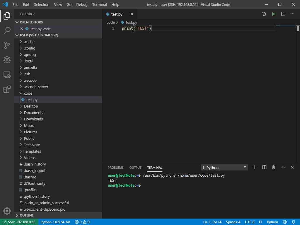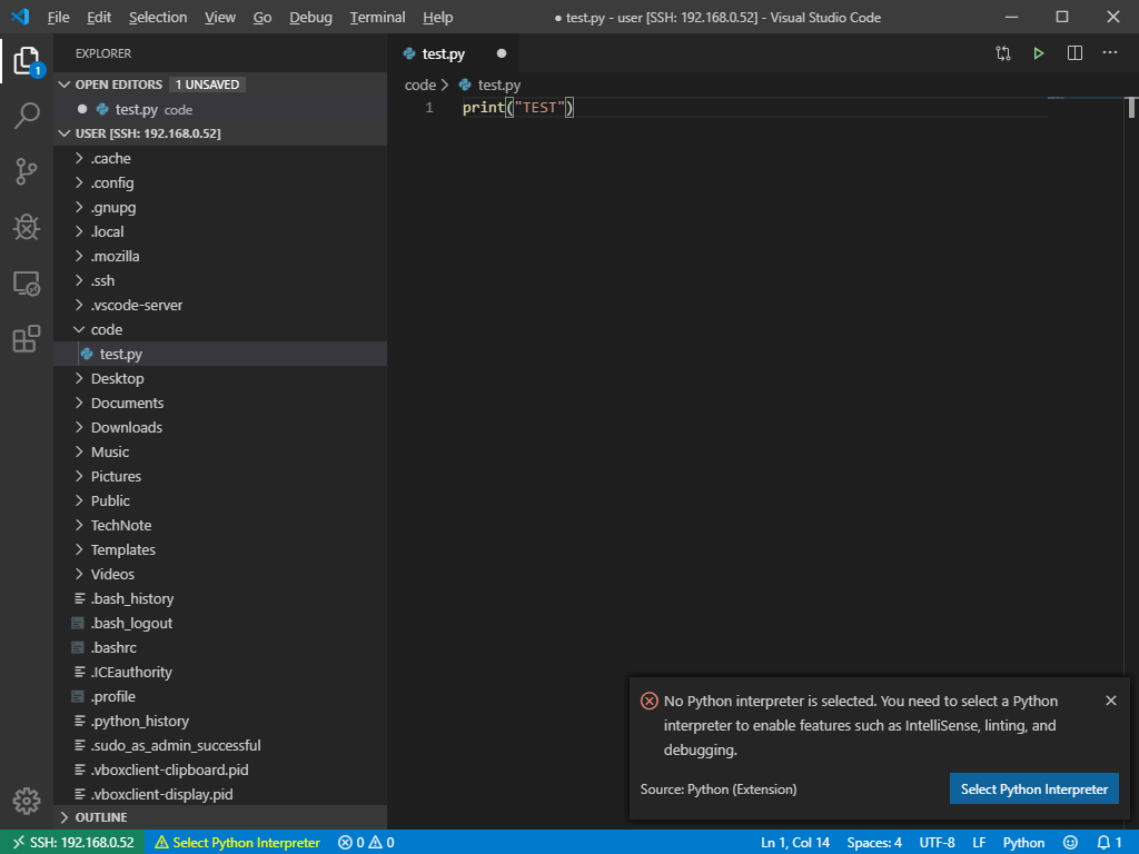 9) 이후 원격 Machine에서 사용할 Python Interpreter 를 고르고, 테스트 코드를 작성하여 실행할 수 있다.