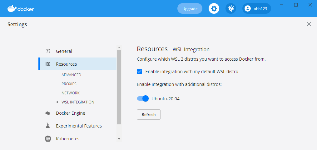 Resources -> WSL INTEGRATION에서 해당 리소스 비활성에서 활성화 상태로 변경